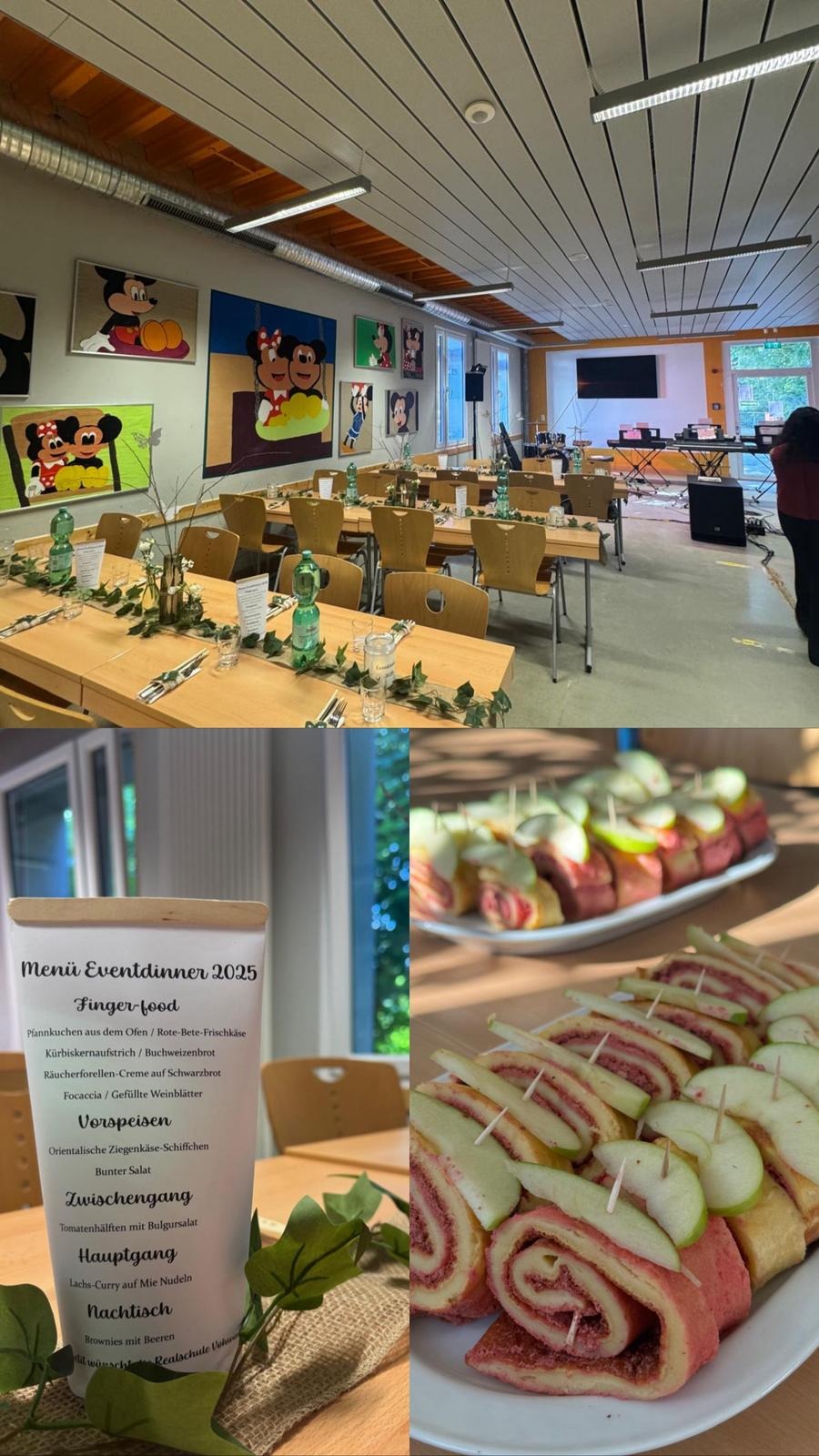 Sie werden in unserer Mensa während der Aufführungen mit einem mehrgängigen Menü begleitet. Dies wird wiederum von unseren Schülerinnen und Schülern der Projektkurse Hauswirtschaft der Klassen 9 und 10 gekocht und serviert.