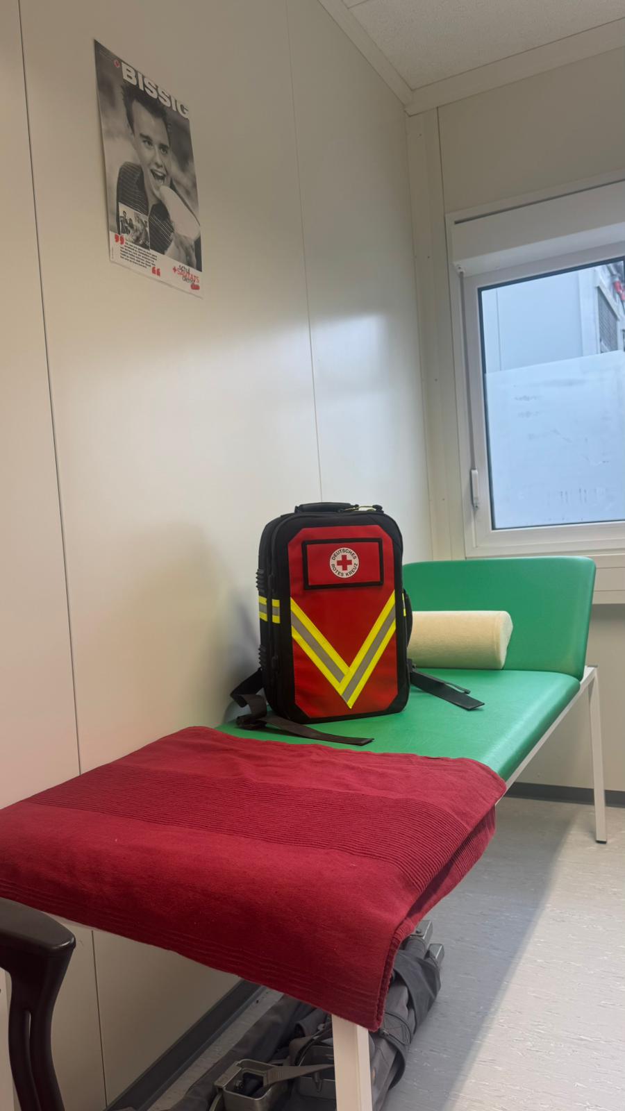 In den Pausen findet ihr die Sanis in unserem Sanitätsraum im Verwaltungstrakt (Gebäude V).